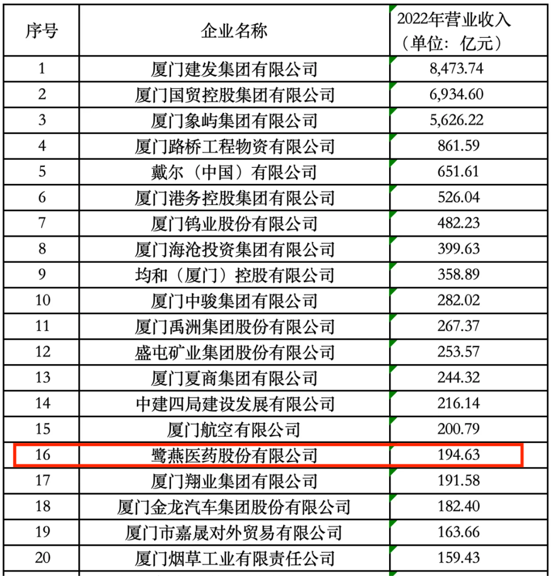 2023廈門企業百強揭曉,鷺燕醫藥榮列第16位!