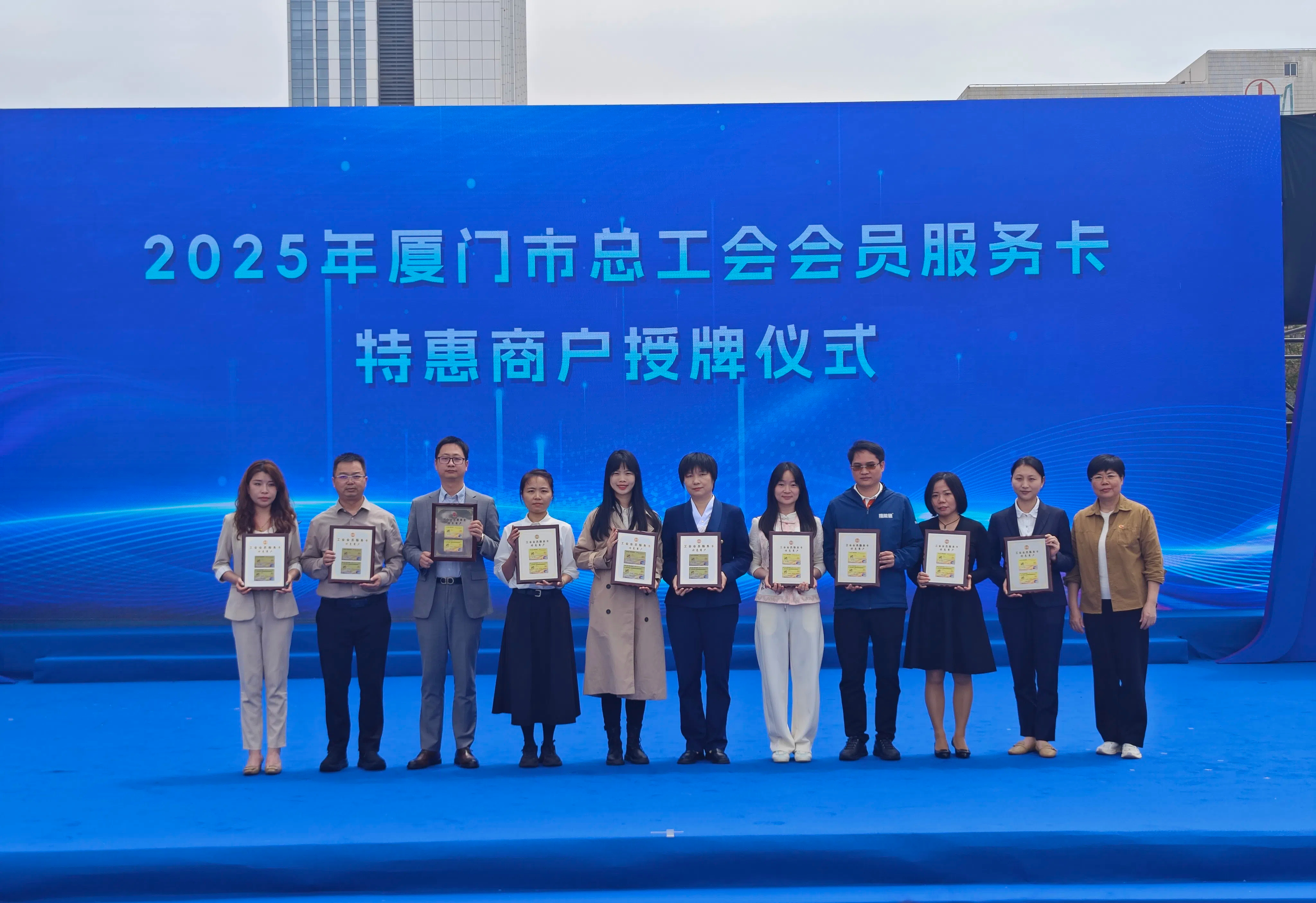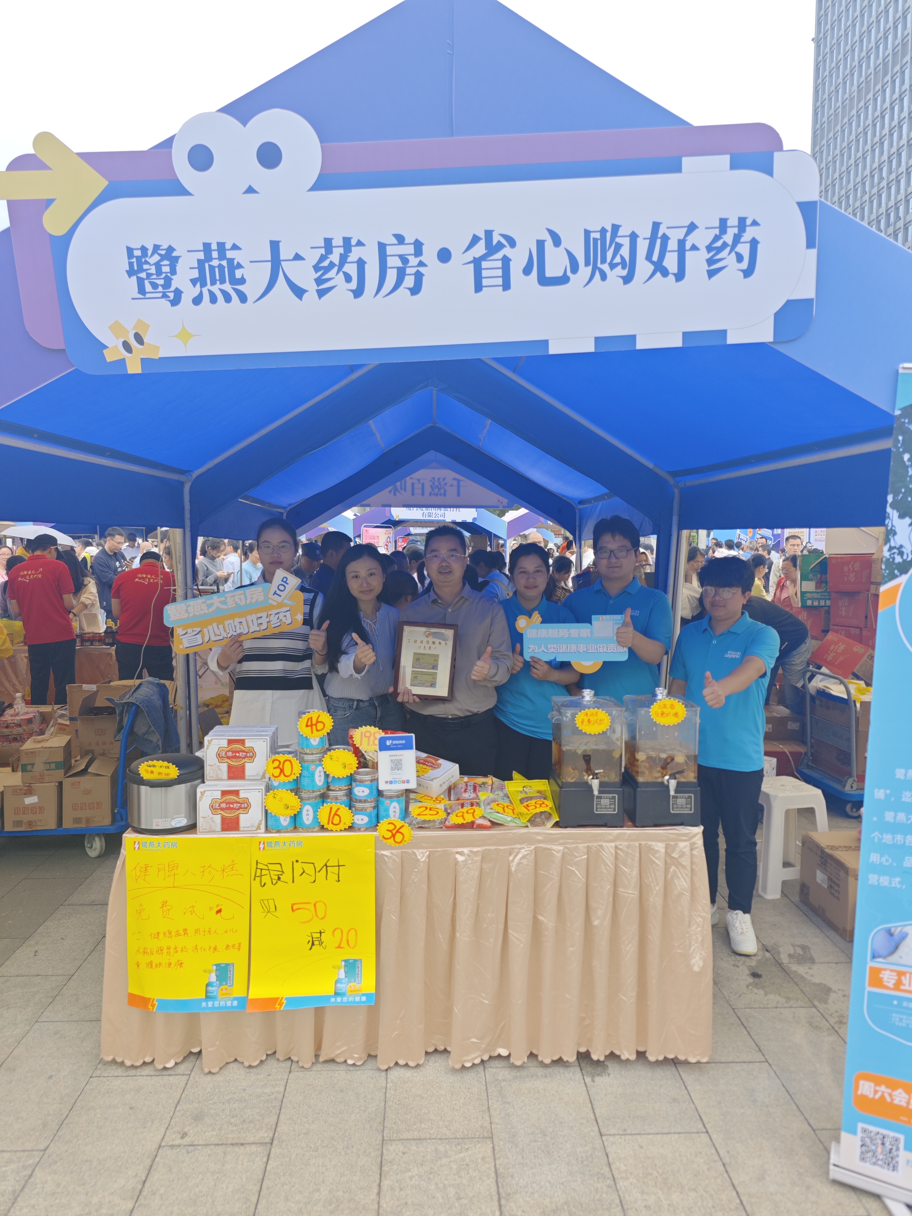 413日,由廈門市總工會指導、市機關事業工會聯合會主辦的“惠工聚益 共享美好”2025年工會集市活動在五一廣場盛大啟幕。廈門鷺燕大藥房作為2025年“工會會員服務卡特惠商戶”首批新簽約的10家優質企業正式獲得授牌,并攜多項健康惠民服務亮相。
