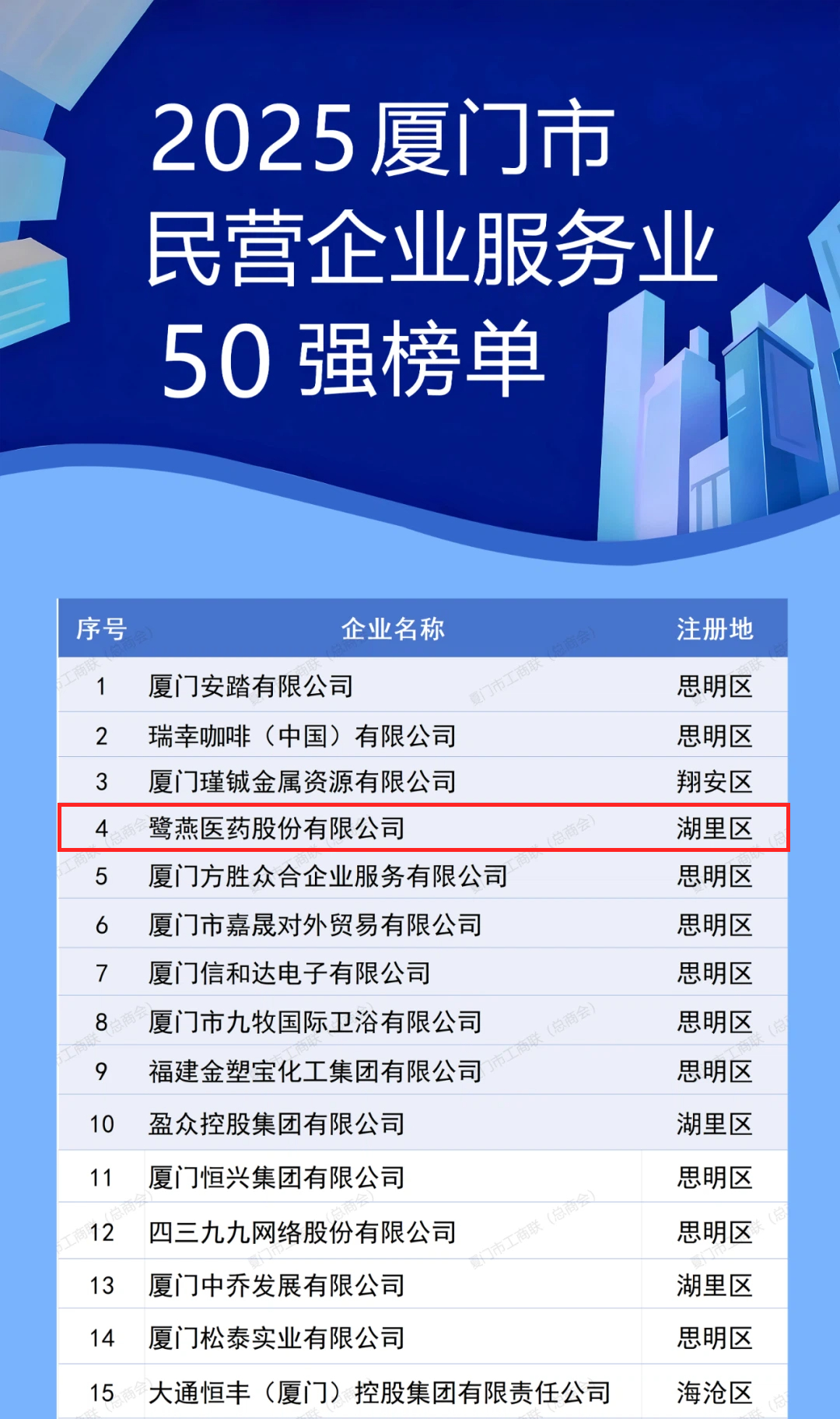 【喜報】2025廈門市民營企業100強系列榜單發布 ——鷺燕醫藥再獲兩大殊榮