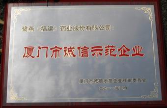 “2008 —2009年度廈門誠(chéng)信示范企業(yè)”是廈門首個(gè)誠(chéng)信企業(yè)評(píng)選活動(dòng)。本活動(dòng)由廈門市誠(chéng)信促進(jìn)會(huì)、廈門市企業(yè)和企業(yè)家聯(lián)合會(huì)、各級(jí)政府機(jī)關(guān)等28個(gè)相關(guān)部門聯(lián)合開展,組委會(huì)本著“公開、公正、公平”的原則首次在全市范圍內(nèi)共同開展誠(chéng)信示范企業(yè)的評(píng)選。經(jīng)過(guò)一系列激烈的競(jìng)爭(zhēng)及組委會(huì)的嚴(yán)格評(píng)選,本企業(yè)最終獲得了 “2008—2009年度廈門市誠(chéng)信示范企業(yè)”的榮譽(yù)稱號(hào)。